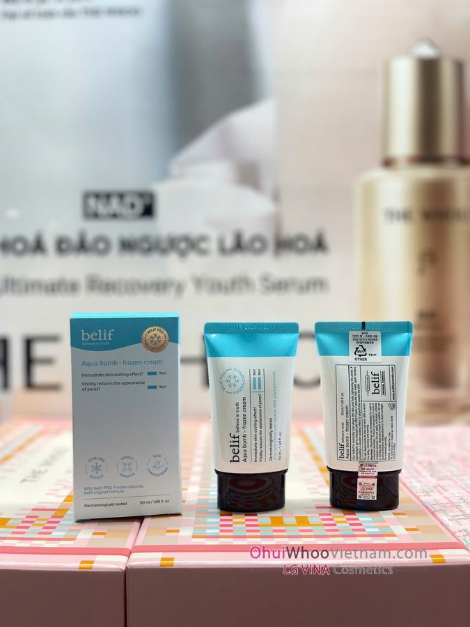belif Frozen Cream mang đến cảm giác “làm lạnh da” tức thì, giúp hạ nhiệt, giảm sưng và thu nhỏ lỗ chân lông, mang lại làn da tươi mát và căng bóng. Sản phẩm kết hợp độc đáo giữa gel làm mát và viên nang lạnh, mang đến hiệu quả kép — làm dịu da nhạy cảm và dưỡng ẩm sâu. Cho lớp nền trang điểm mịn mượt, rạng rỡ suốt ngày dài.