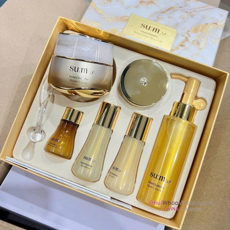 Bộ Kem Dưỡng Sum37 LosecSumma Repair Cream Special Set là dòng sản phẩm cao cấp nhất của hãng. Sản phẩm kết hợp bí pháp La Mã cổ đại và công nghệ lên men hiện đại. Dòng LosecSumma mang đến khả năng thanh lọc và hồi sinh làn da thần kỳ. Chất kem đậm đặc nhưng thẩm thấu rất nhanh. Lớp màng dưỡng chất quý giá giúp xóa tan dấu hiệu lão hóa hiệu quả. Làn da bạn sẽ rạng rỡ và đầy sức sống như được thay mới.