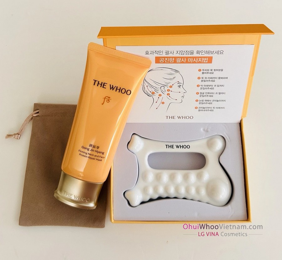 Đây là bộ mặt nạ cao cấp của Whoo. Whoo thuộc dòng Gong Jin Hyang danh tiếng. Bộ sản phẩm chuyên biệt cho mặt và cổ. Nó sử dụng công nghệ Protein Repair độc đáo. Công nghệ này giúp phục hồi cấu trúc da. Mặt nạ giàu dưỡng chất Hoàng Cung. Nó tăng cường độ săn chắc ngay sau khi dùng. Da trở nên căng mịn, đàn hồi hơn. Bộ này mang lại hiệu quả spa chuyên nghiệp ngay tại nhà bạn.