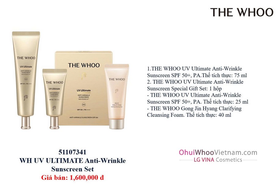 Set Kem chống nắng cải thiện nếp nhăn The Whoo Gongjinhyang UV Ultimate Anti-Wrinkle Sun