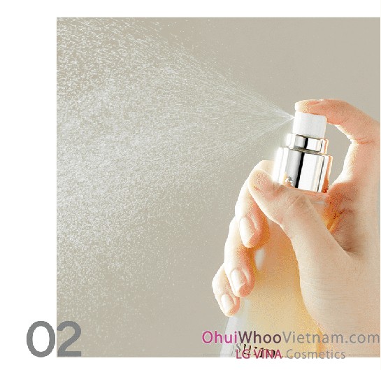 Giữ chai cách mặt khoảng 20cm, nhắm mắt và xịt đều khắp gương mặt.